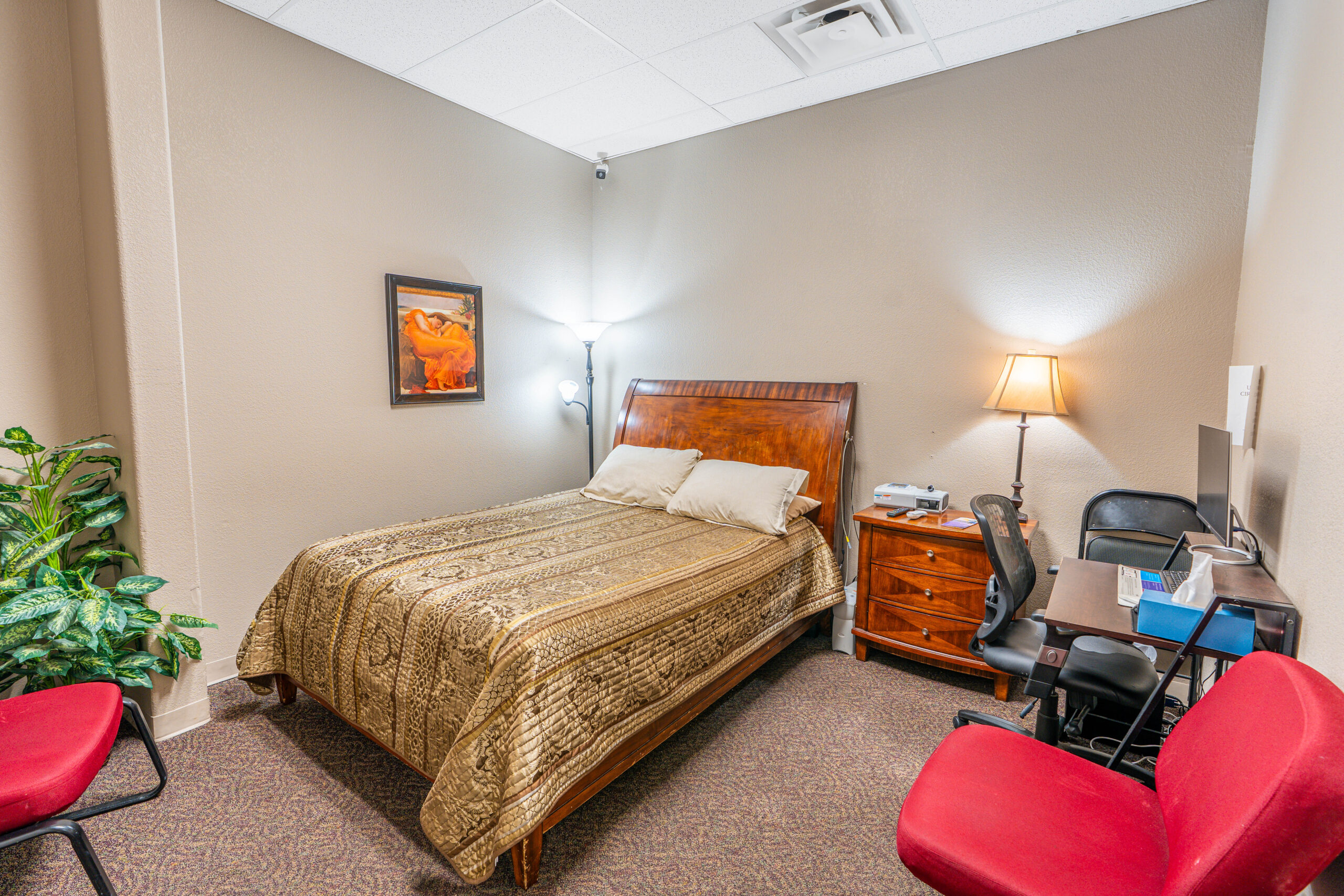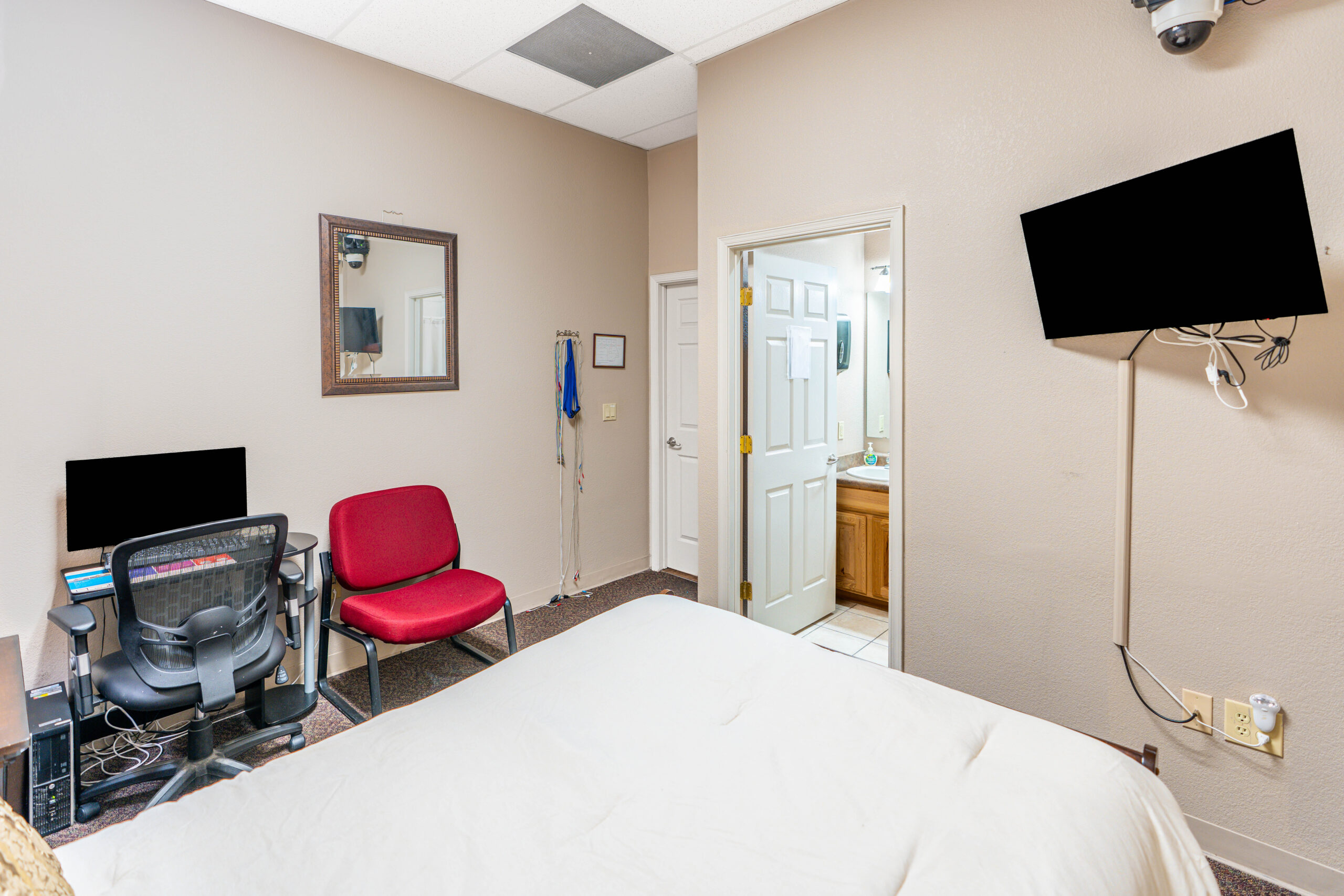 Our Las Cruces Sleep Lab features five private, comfortable bedrooms designed to create a calm, home-like environment for accurate overnight sleep studies.